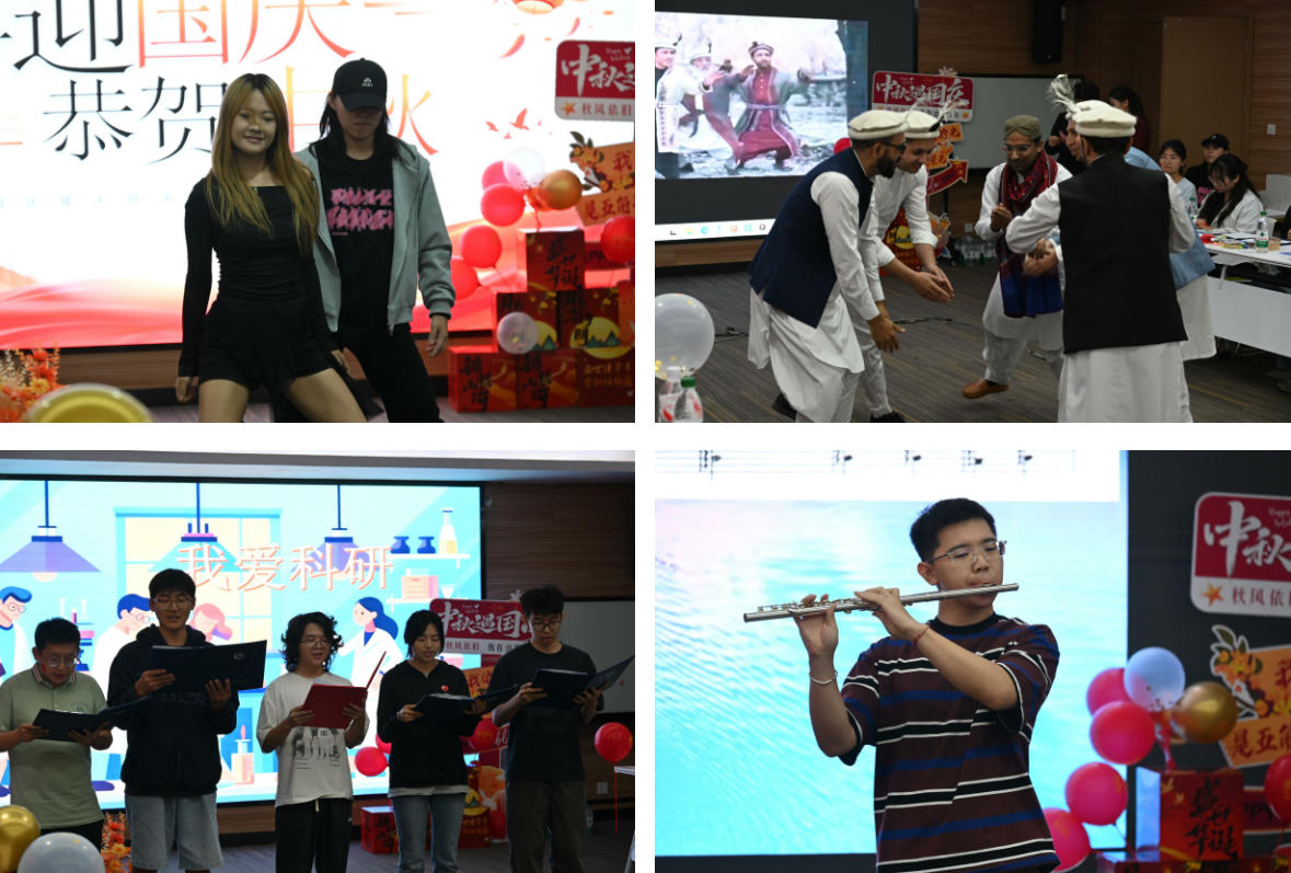 ????9月30日上午,成都山地所组织研究生开展“喜迎国庆?恭贺中秋”联欢会。所长康世昌、纪委书记周鹏浩出席活动。 ????康世昌向全体研究生致以节日问候与祝福,并强调研究生作为国家重要人才储备,应在科研中勇于探索、实干担当。周鹏浩寄语研究生厚植爱国情怀、投身科技报国,并不忘在中秋佳节向家人传递问候。 ????本次联欢会以“青春活力、文化融合”为核心,研究生通过乐器演奏、舞蹈、歌唱、诗朗诵等方式,展示了自主编排、内容饱满的节目,中国学生和留学生一起也展示了多个国家的民族文化。 ????整个活动以中华人民共和国国歌开场,全场师生共同合唱《我和我的祖国》收尾,学生们对祖国的祝福、对传统文化的热爱洋溢全场。