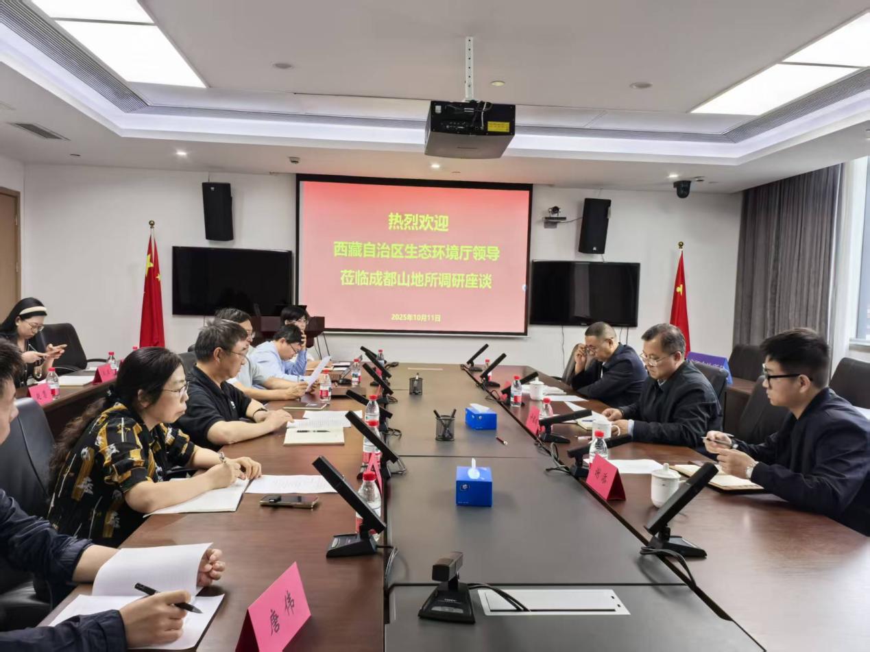 10月11日,西藏自治区生态环境厅党组成员、副厅长许福成一行调研成都山地所,并进行科技合作座谈交流。所长康世昌出席。科技处处长葛永刚主持会议。? ????康世昌对许福成一行表示热烈欢迎,并简要介绍了成都山地所科研工作情况,希望双方在山地环境、山地灾害、山区发展等方面加强科技项目合作和技术交流。葛永刚从使命定位、历史贡献、近期代表成果和“十四五”发展进展四个方面详细介绍了研究所科技创新工作。